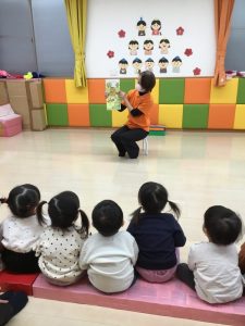 みんな絵本を食い入るように見てますよ![]()