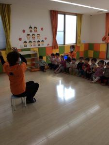 フラッシュカード・絵本の読み聞かせ・体操・リトミック・英語の育脳カリキュラムを毎日取り入れています![]()