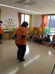 次には「おおきなたいこ」の曲に合わせてリズム打ちをしました。