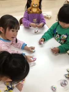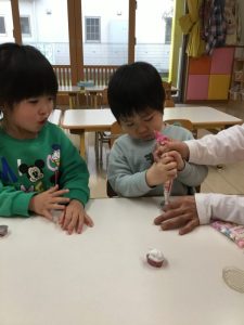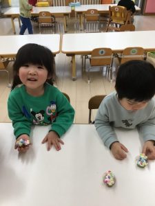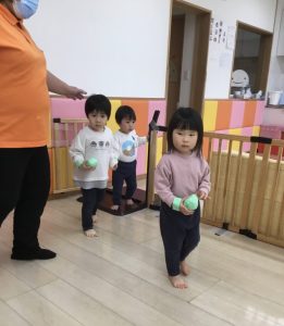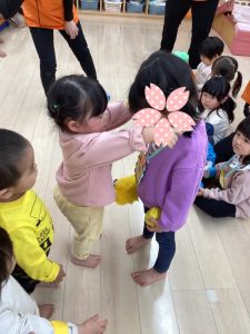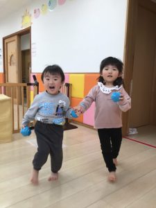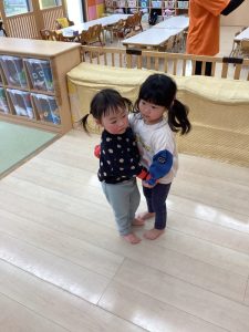 勿論、いちご組の時には自分の事で精一杯だった子どもたちです。でも毎日、顔を合わせるうちにどんどん仲良くなっていき、今では5人が揃わないと「〇〇ちゃんどうしたのかな?」「明日は、来るかな?」と心配で仕方ないんです。2歳にしてこんなに友だちの事を思いやれるなんて本当に素敵な事だと思いませんか![]()
