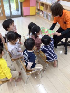 今週に入ってからは、みんなで絵本を楽しむ時間も持てるようになってきましたので、クラスだけでなく全みんなで月刊絵本を楽しく見ている様子もお伝えしようと思います