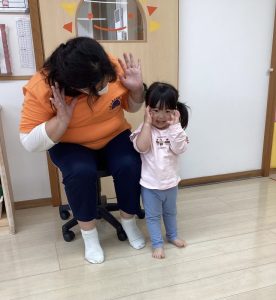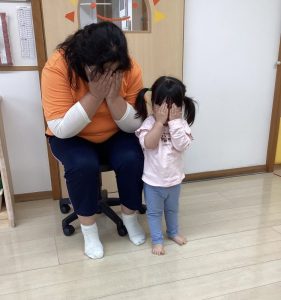 先生の「いないいない・・・」に誘われて