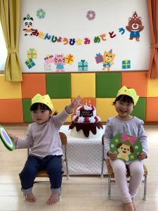 今年度、初めての誕生日会が4月25日にありました。今回は、りんご組のお姉さん2人がお誕生日を迎えましたよ