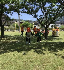 散歩の途中では、畑仕事をしているおばあさんが声を掛けてくださったり、歩道をすれ違う近所の人に子どもたちの方から「こんにちは」と元気に挨拶をしたりして自然のうちに社会性も身に付けている子どもたちです