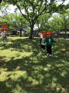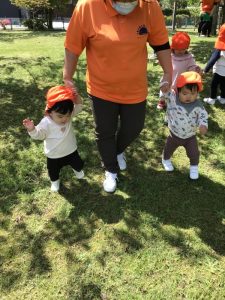 みんなで出掛けた初めてのお散歩は、ゴールデンウイークの狭間だったので、全園児揃って出掛けることが出来ず残念でした