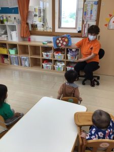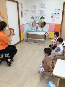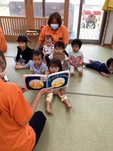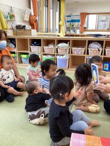 今週は、ブックスタート赤ちゃん絵本30冊の中から2冊の絵本を選んで読み合いをしました。子どもたちが楽しそうに見ている様子をお伝えしたいと思います![]()