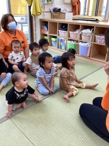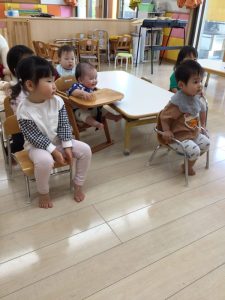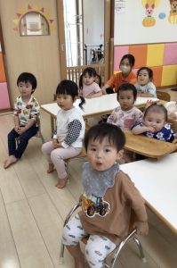 もも組のお友だちもニコニコ笑顔で見ていますね![]()