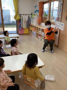 次回は、0歳児用の月刊絵本「だれのながぐつ」を紹介しようと思いますので楽しみにしていてください![]()