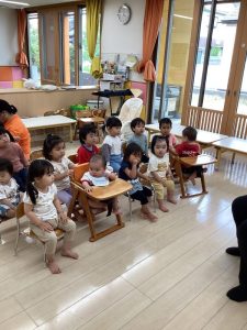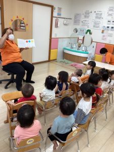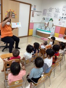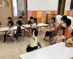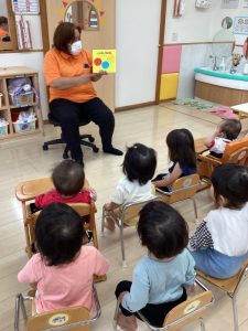 今回は、1歳児用の月刊絵本「かさ」とその絵本に関連している「ふうせん ゆらゆら」の2冊の絵本の読み合い風景をご覧ください🎈