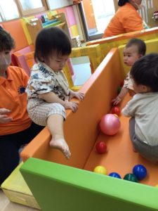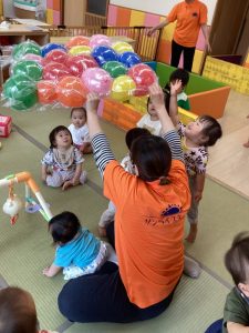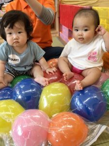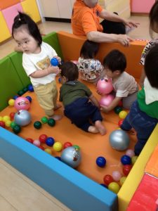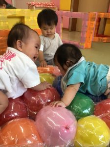 今回の風船マットやボールプールで遊ぶ子どもたちの様子を見ていただくとその変化が良く分かると思います![]()