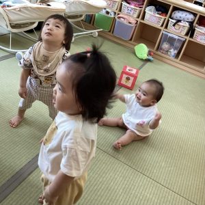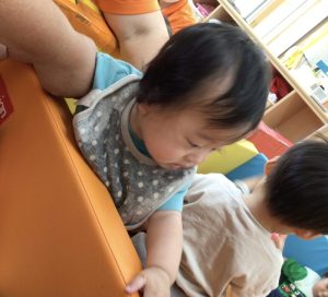 0歳、1歳児さんの遊び始めの表情と遊びに慣れてきた後半の表情の違いを見てもらえると嬉しいです。