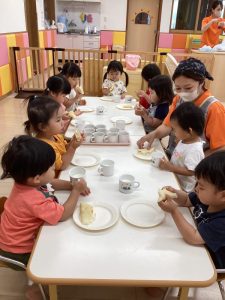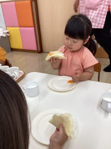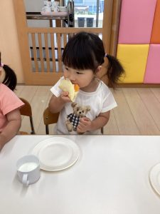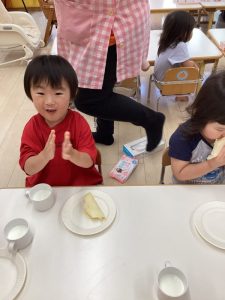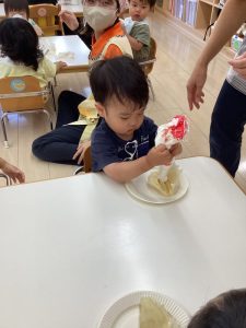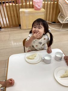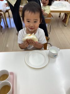 2歳児さんの手作りおやつを食べている時の幸せそうな表現も是非ご覧ください![]()