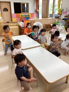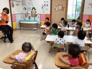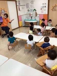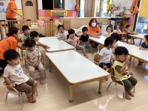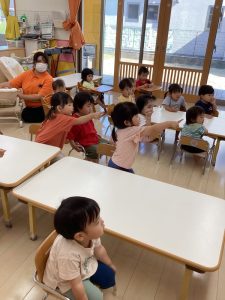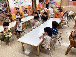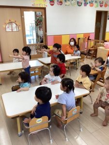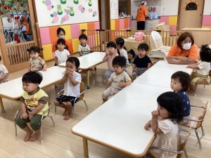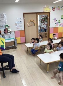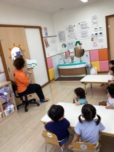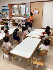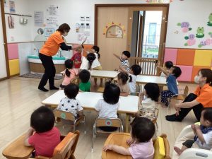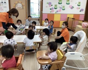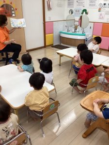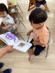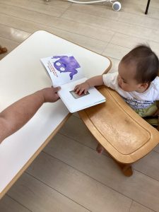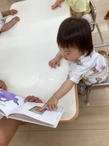 「うずらちゃんのかくれんぼ」や「はらぺこあおむし」は特に大好きな絵本で子どもたちの方から「うずらちゃん読んで〜」「あおむしのが良い〜」という声が聞かれます。