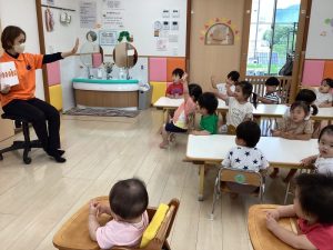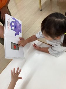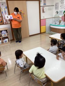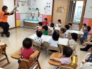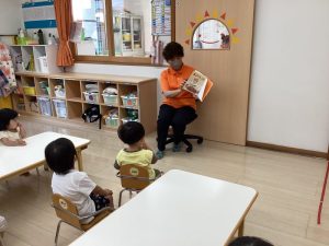今回は、境港市社会福祉協議会さんから寄贈していただいた絵本を楽しんでいる子どもたちの様子をお伝えしたいと思います