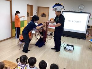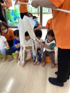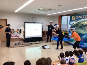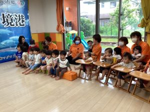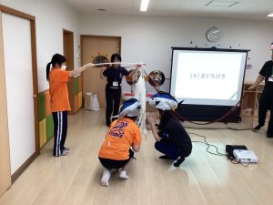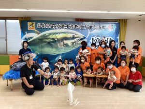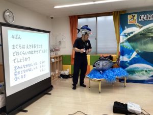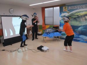 今回はファミリーサポートセンターの方々も一緒にマグロ集会に参加されたので、劇でマグロの役になって活躍していただきました