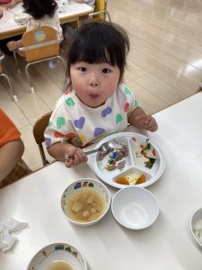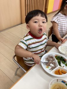 境港園の子どもたちは、まずはマグロステーキ(ほぐしてありますが…)を実食マグロについては後日、楽しくお勉強しました