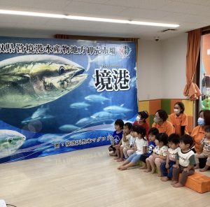 境港市が毎年行っている食育活動のおかげで境港園の子どもたちは新鮮なクロマグロのステーキを実食したり、マグロについて分かりやすくお勉強させてもらったりすることが出来ます