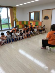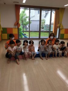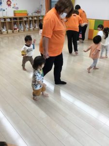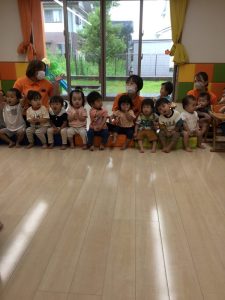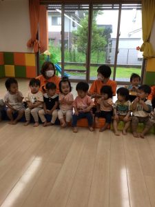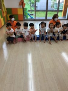 海の曲に合わせて手拍子をする保育士のリズムを、体を揺らしながら感じていましたよ😊