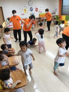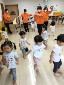 ピアノの強弱や高さに合わせて色々な動きをしました。