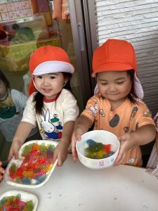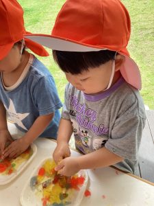 寒天ゼリーで遊んだよ