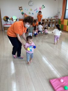 もも組さんも先生と一緒にぴょんぴょん跳んでいますよ🎶