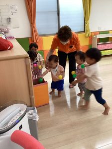 いちご組さんもも組さんは慎重にゆっくり運びます!