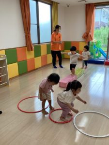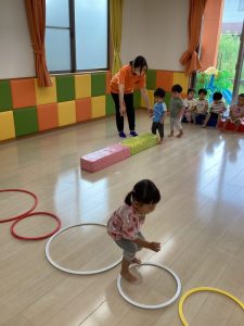 次は一本橋渡りとフープ跳びです🎶