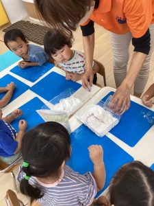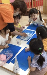 今回は、水遊びだけでなく色々な素材で楽しく遊んでいる子どもたちの様子を見てください![]()