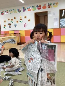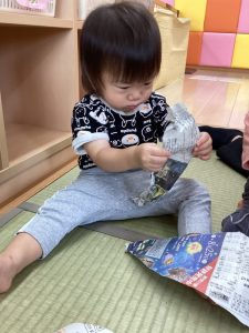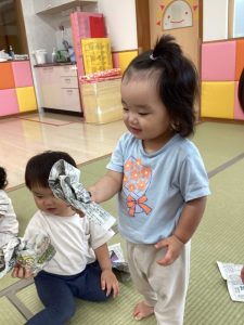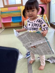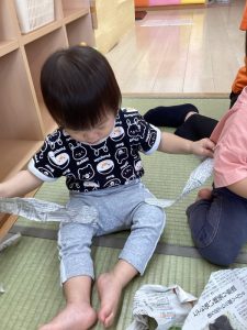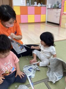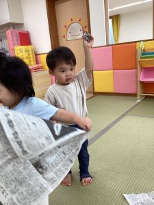 🍓いちご組🍓(1歳児) 〜新聞紙遊び〜