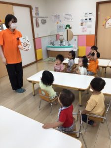 それだけでなく、子どもたちは大好きな果物を「どうぞぉ~」と差し出されると「やったぁ~