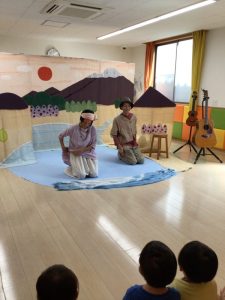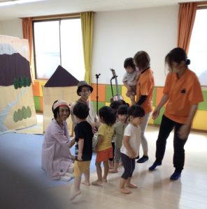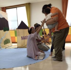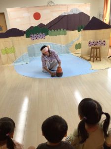 今の子どもたちはメディアが発達した中で生活をしているので、小さいうちからテレビやDVDを当たり前のように見ていると思います。そんな中、子どもたちに本物の楽器や生の歌声を聴いてもらい豊かな感性や想像力を養ってもらおうと企画されている「アートスタート」はとても素晴らしい取り組みだと思います。境港市のご協力のもと、マイトリーさんをお招きして楽しい「わらべうたの世界」を満喫した子どもたちです![]()