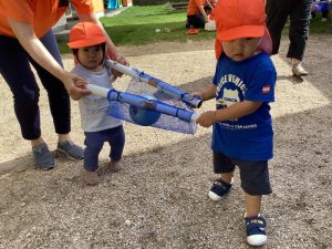 異年齢で関わる事で大きい組さんは小さい子に優しい声掛けをしたり、手を差し伸べてあげたりしてくれる様になります。また、小さい組さんは大きい子に憧れて側に寄って行き遊んでもらおうとする様になります。お互いに良い刺激を受けながら色々なお友だちと遊ぶ楽しさを味わって欲しいと思っています![]()