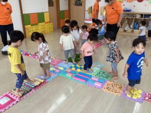異年齢で関わりながらゲームや感触遊びを楽しんでいる子どもたちのステキな笑顔を見て癒されてもらえると嬉しいです![]()