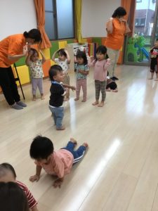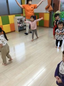体を使って音を表現したり、音楽に合わせて体を動かしたりして楽しみました♬