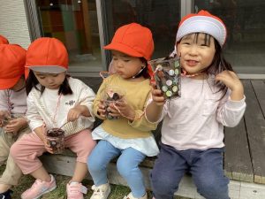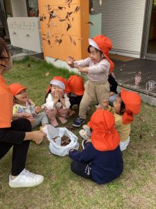 お散歩に出掛けた時に実のついた木を見つけたら「〇〇ちゃんならなのが落ちると楽しい❓」等と親子で楽しむのも良いですよね![]()