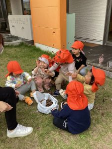 絵本の真似をしてみんなで落ち葉のシャワーも楽しんで満足そうでした![]()