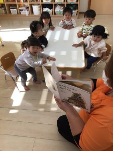 今回は、今月の月刊絵本をそれぞれのクラスで楽しく読み合っている様子を見てもらえたら・・・と思います![]()