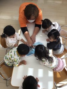お天気の良い日は戸外でしっかり遊び、雨降りの時は絵本タイムを大切にしていけたら良いなぁ〜と思っています![]()