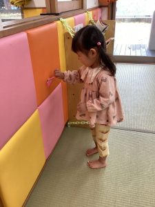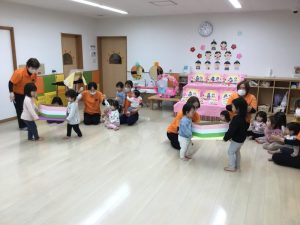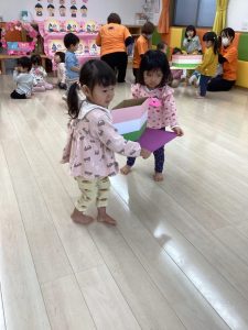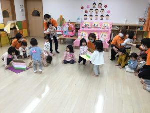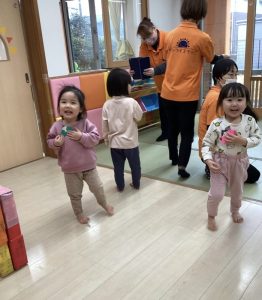 年度当初はどの子も幼くて先生を頼る事しか出来なかったのですが、この1年で大きく成長し、りんご組さんは自分からすすんで小さい組のお友だちに手を差し伸べる姿が多く見られる様になりました。いちご組さんやもも組さんはそんな優しいお姉さん、お兄さんに心を開き「手を繋いで〜」「一緒に遊んで〜」と慕う様になりました