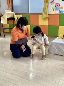 昨年4月に入園して来た時には、まだしっかり歩く事が出来ず立ち上がるとグラついていたり、時々ハイハイをする姿も見られたいた2人のお友だち。1年経った今では走ったり自分で衣服を脱いだりする事が出来るようになりました![]()