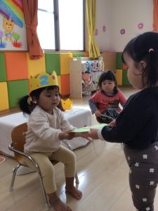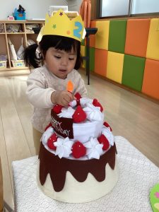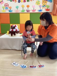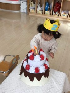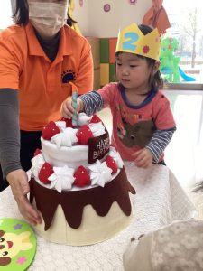 春分の日も過ぎ、少しずつ春らしい季節になって来ました。いよいよ今年度最後のお誕生日会が行われました![]()