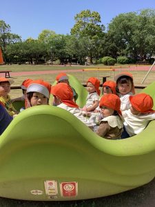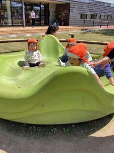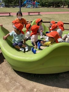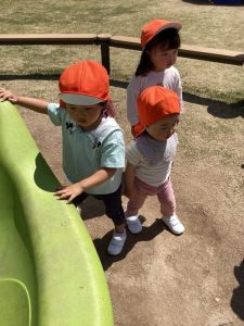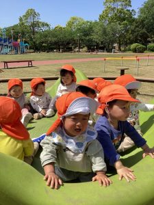 いよいよ連休も終わり子どもたちも園生活に慣れて来たので中央公園まで散歩をし、遊具で遊んだり芝生の上を散策する事にしました![]()
