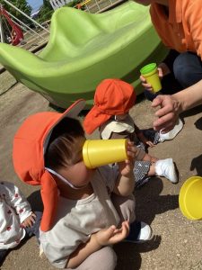 「遊んだ後のお茶は美味しぃ〜😋」