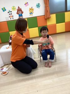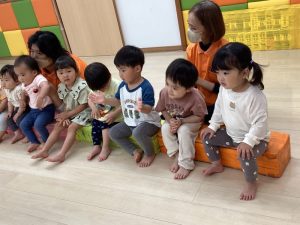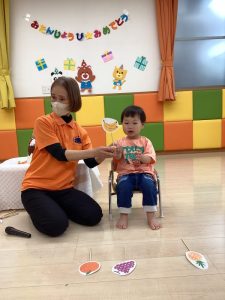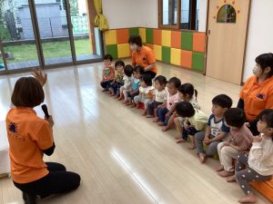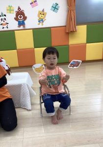 初めて聴いたお誕生日の歌に身体でリズムを取りながらニコニコ笑顔のお友だちもいました![]()