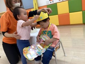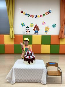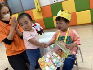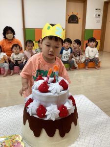 今月はいちご組の男の子がお誕生日の主役でした。ちょっぴり緊張した面持ちでスタートした誕生日会でしたがお友だちや先生にたくさん「おめでとう🎈」と言われてニコニコ笑顔になりました![]()