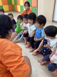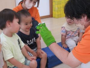 河童さんの手袋シアター🧤も呪文のような言葉に釘付けの子どもたち![]()