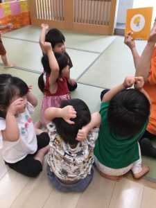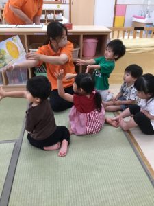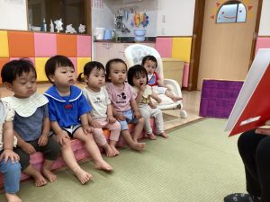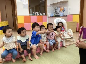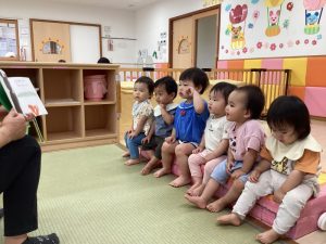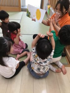 「今日はどんなお話❓」ととても楽しみにしている境港園の子どもたちです![]()