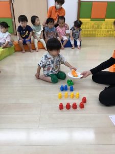 数も色も難しいけどちゃんとお皿に乗せましたよ!他のお友だちもgood 👍