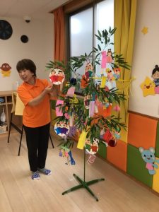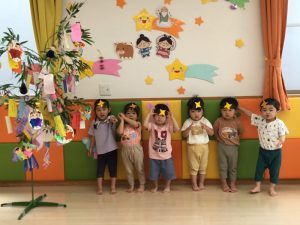 7月7日は七夕。昔から受け継がれている伝統行事のひとつですね。笹に願い事を飾りみんなの無病息災を願う行事となっています。七夕会では、七夕の由来を教えてもらったり絵本を見たりゲームをしたりして楽しいひとときを過ごしました![]()