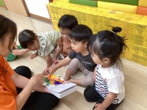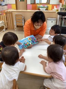 今回は境港福祉協議会様より寄贈して頂いた絵本をクラスで楽しんでいる様子をお伝えしたいと思います